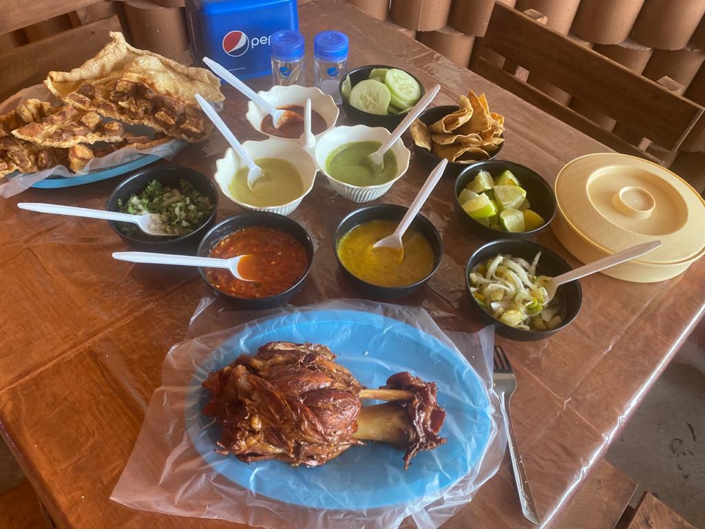 Incluye Tortillas, Salsas, totopos, cebolla con cinlantro, limones, rajas con habanero y piña, pepinos.