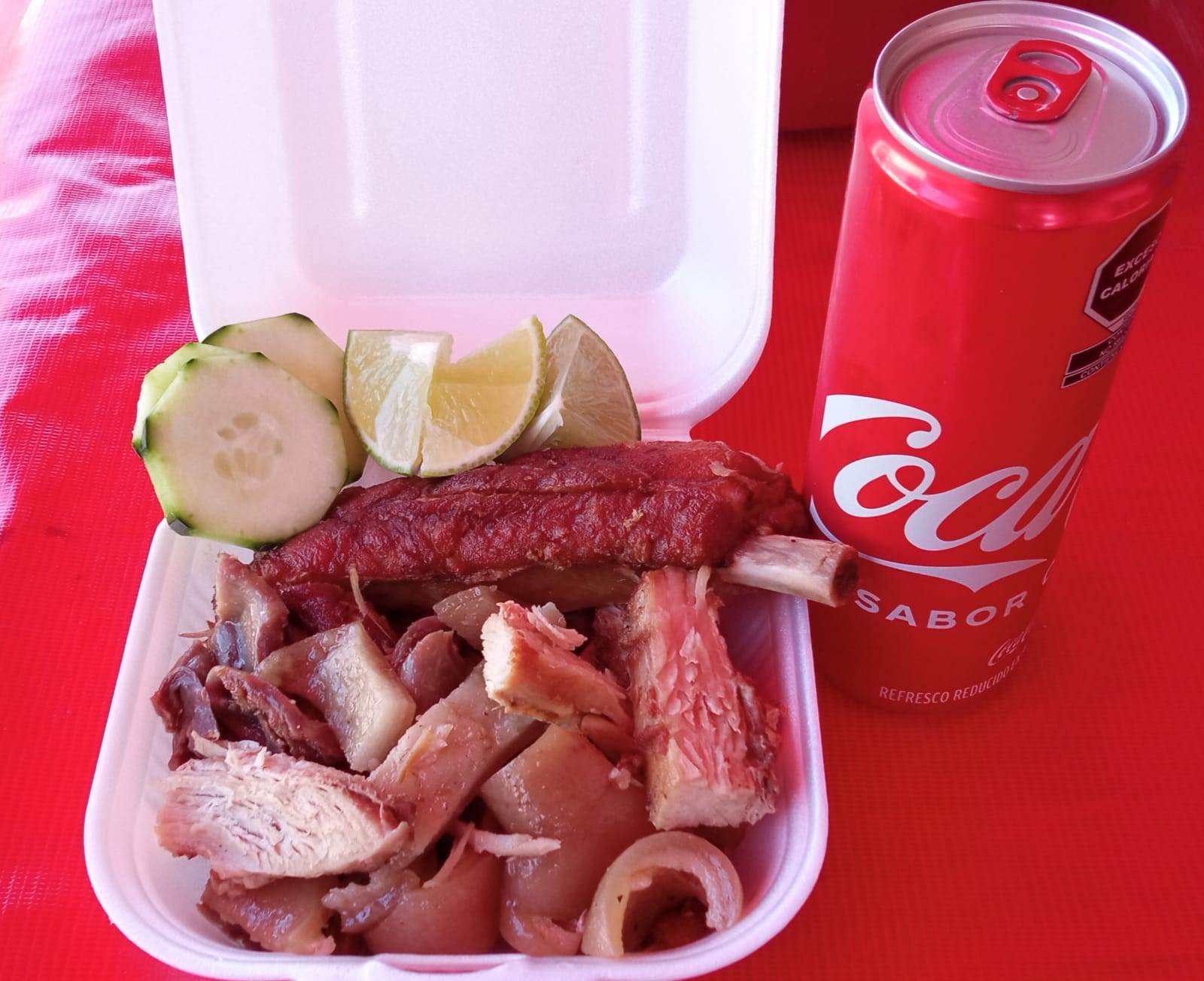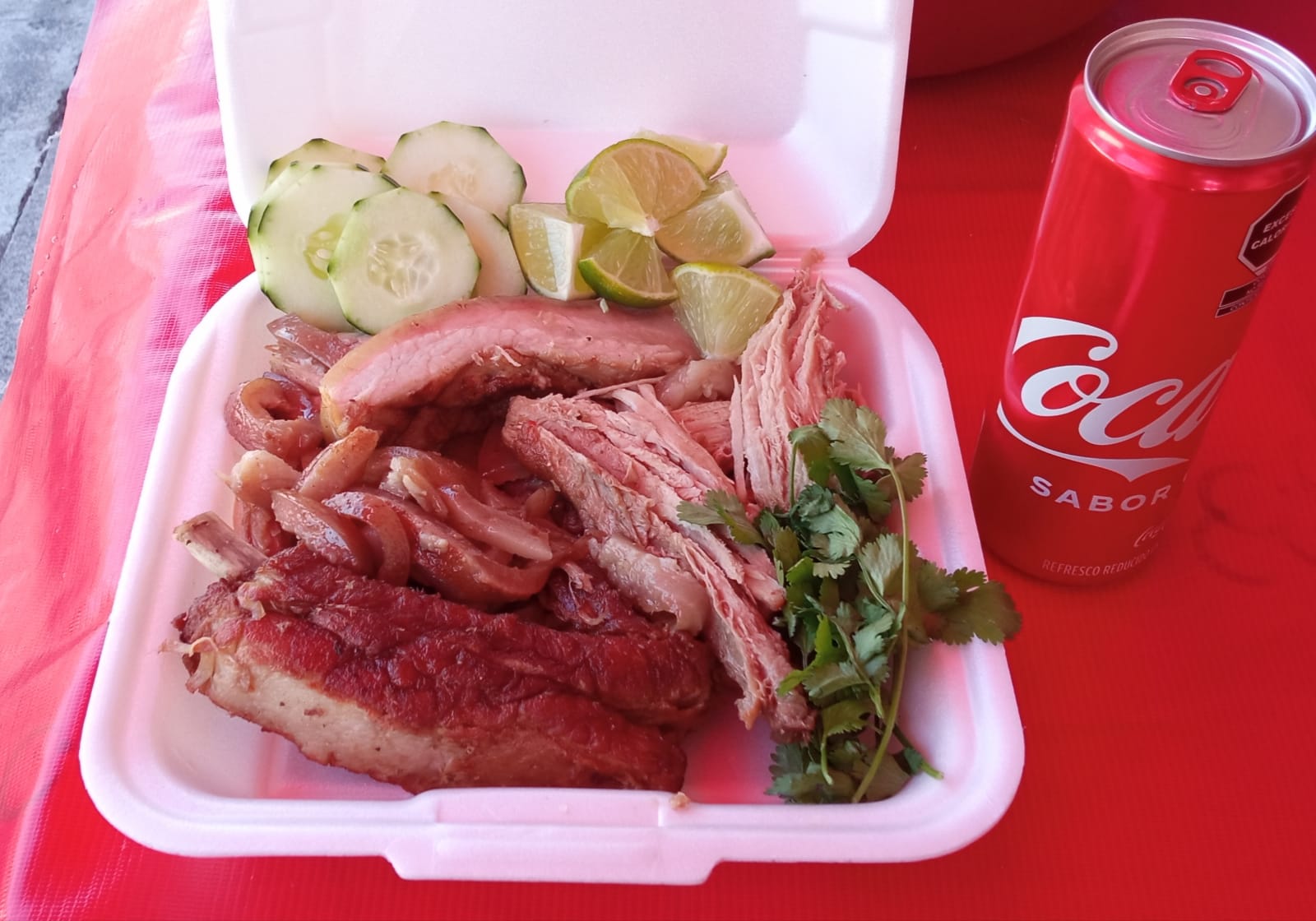 Cilantro, cebolla, salsa verde o roja, limones, pepinos y rajitas de habanero