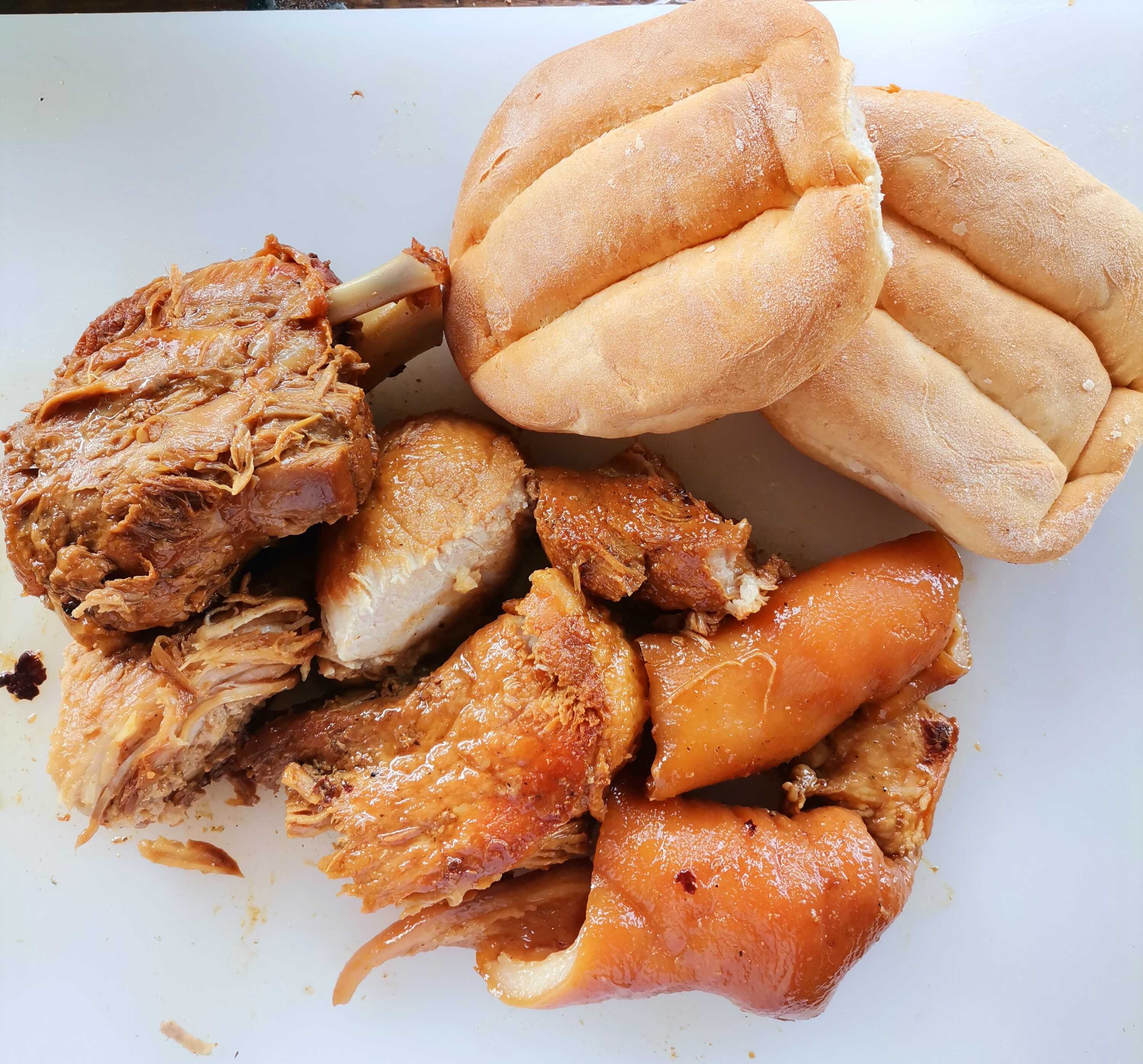 1/2 Kilo de Carnitas + 1 Chamorro + 2 Tortas de Carnitas (inlcuye salsa verde y roja, rábanos y limones, cebolla y cilantro, cebollas con habanero