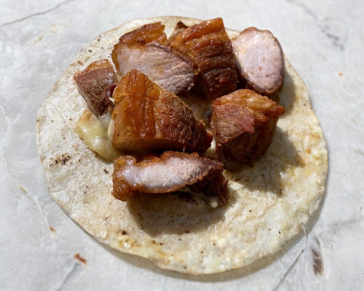 1 Taco de chicharrón regio con queso.