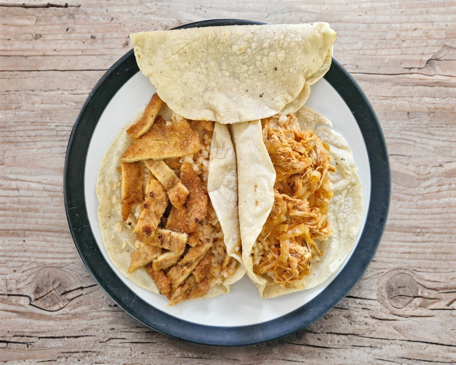 Con 3 tortillas hechas a mano.