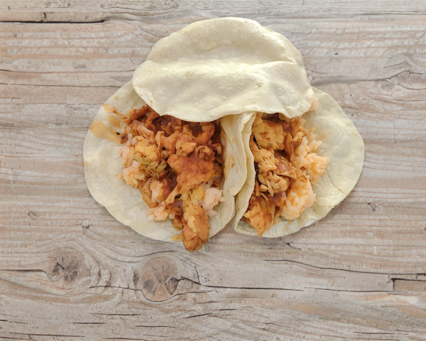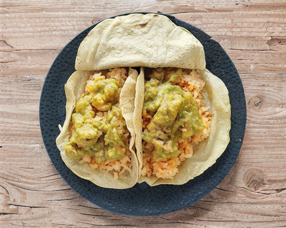 Con 2 tortillas hechas a mano.