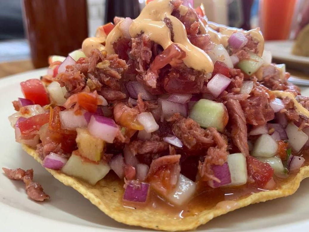 Tostada de ceviche de atún estilo sinaloense.