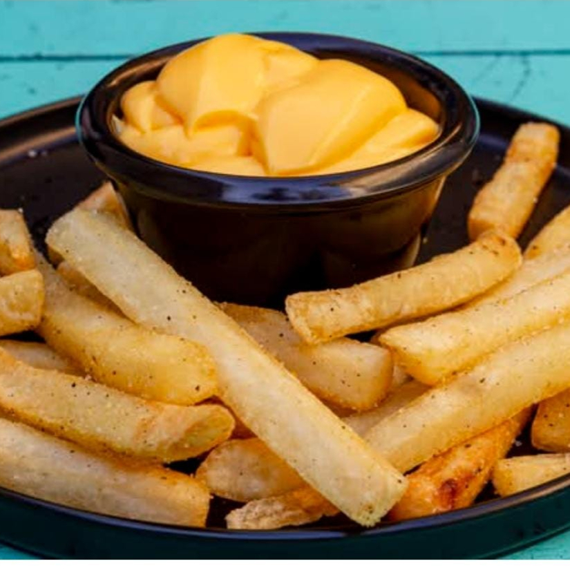 Papas crujientes, sazonadas con el ingrediente secreto de la casa, acompañadas de queso amarillo derretido.