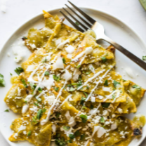 4 enchiladas verdes con relleno a elegir, llevan crema, queso, lechuga y jitomate
