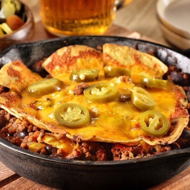 Pan de hot dog, salchicha jumbo, Chili de la casa, cebolla morada, mayonesa