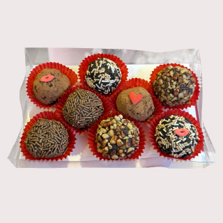 9 trufas de chocolate semiamargo con chispas, nuez y chocolate