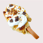 Waffle con galleta cookake, crema pastelera y dos toppings