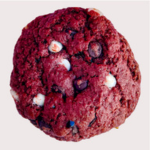Galleta de 85 gr red velvet con chispas de chocolate blanco y oscuro