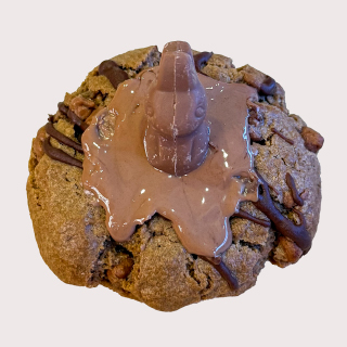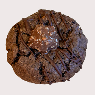Galleta de chocolate, con chispas de chocolate y nuez, rellena de crema de avellana y un trozo de ferrero (90gr)