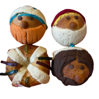 Concha con carita de Gaspar hecha de masa madre