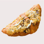 Croissant de masa madre, relleno y cubierto con la galleta cookake de tu elección y un poco de chocolate blanco