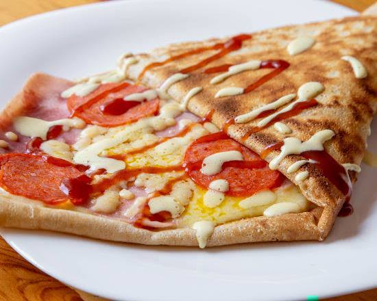 Crepa rellena de queso manchego con pepperoni.