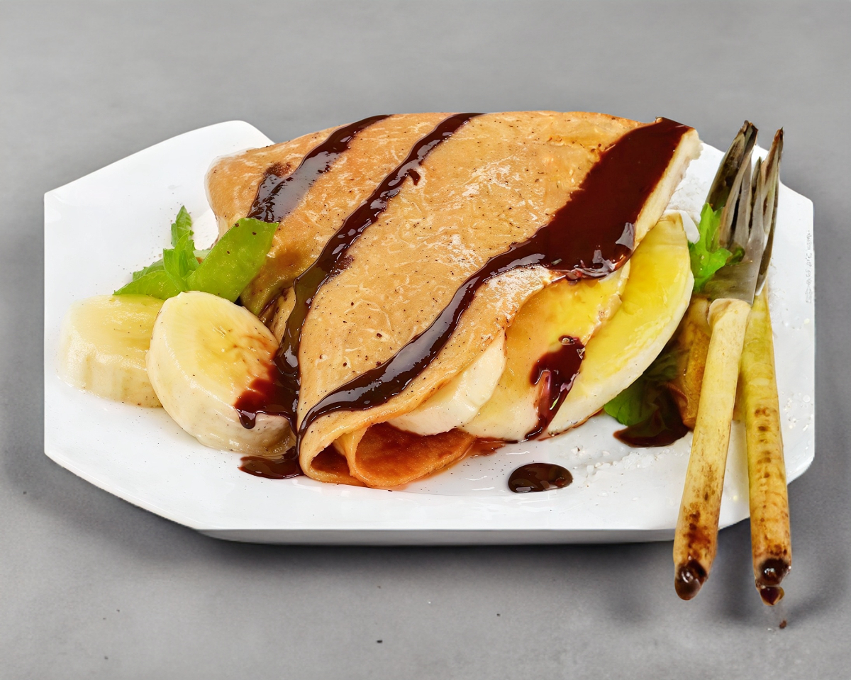 Crepa rellena de plátano con Nutella.