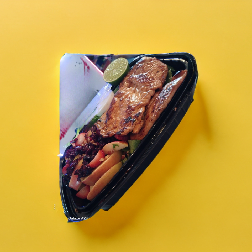 CAMA DE LECHUGAS CON JITOMATE CEBOLLA MORADA AGUACATE BROCOLY Y PECHUGA ASADA