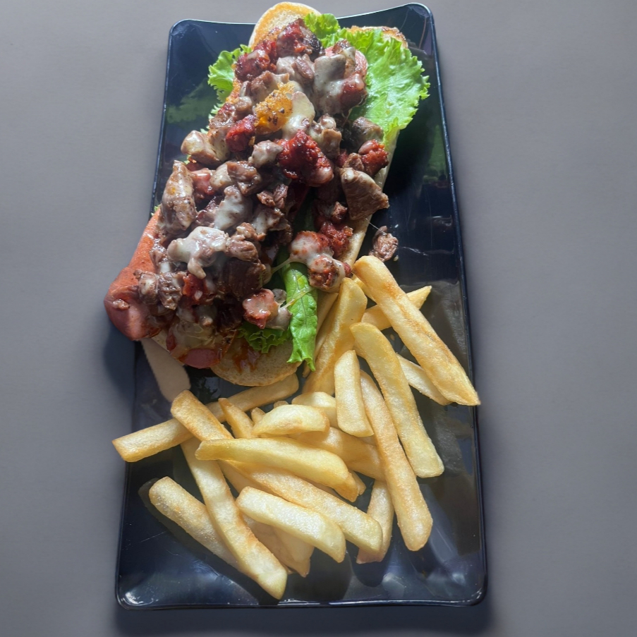 Milanesa, pierna, salchicha, chorizo y queso. para una persona