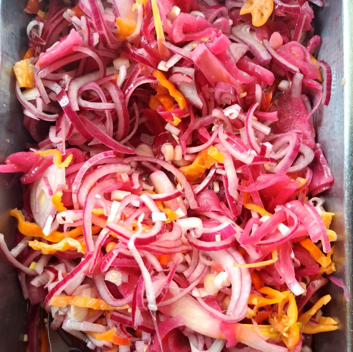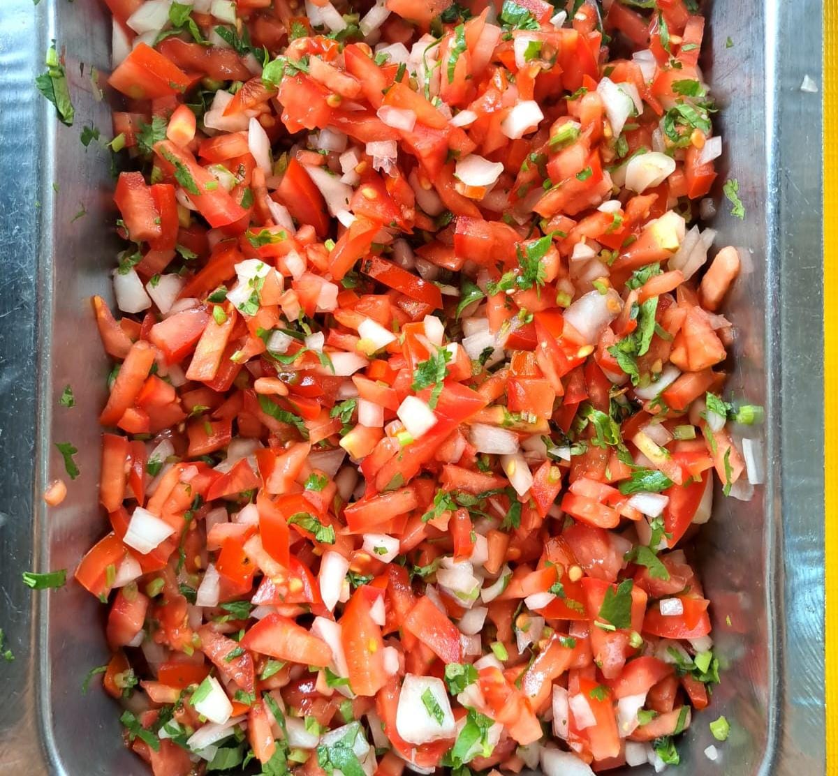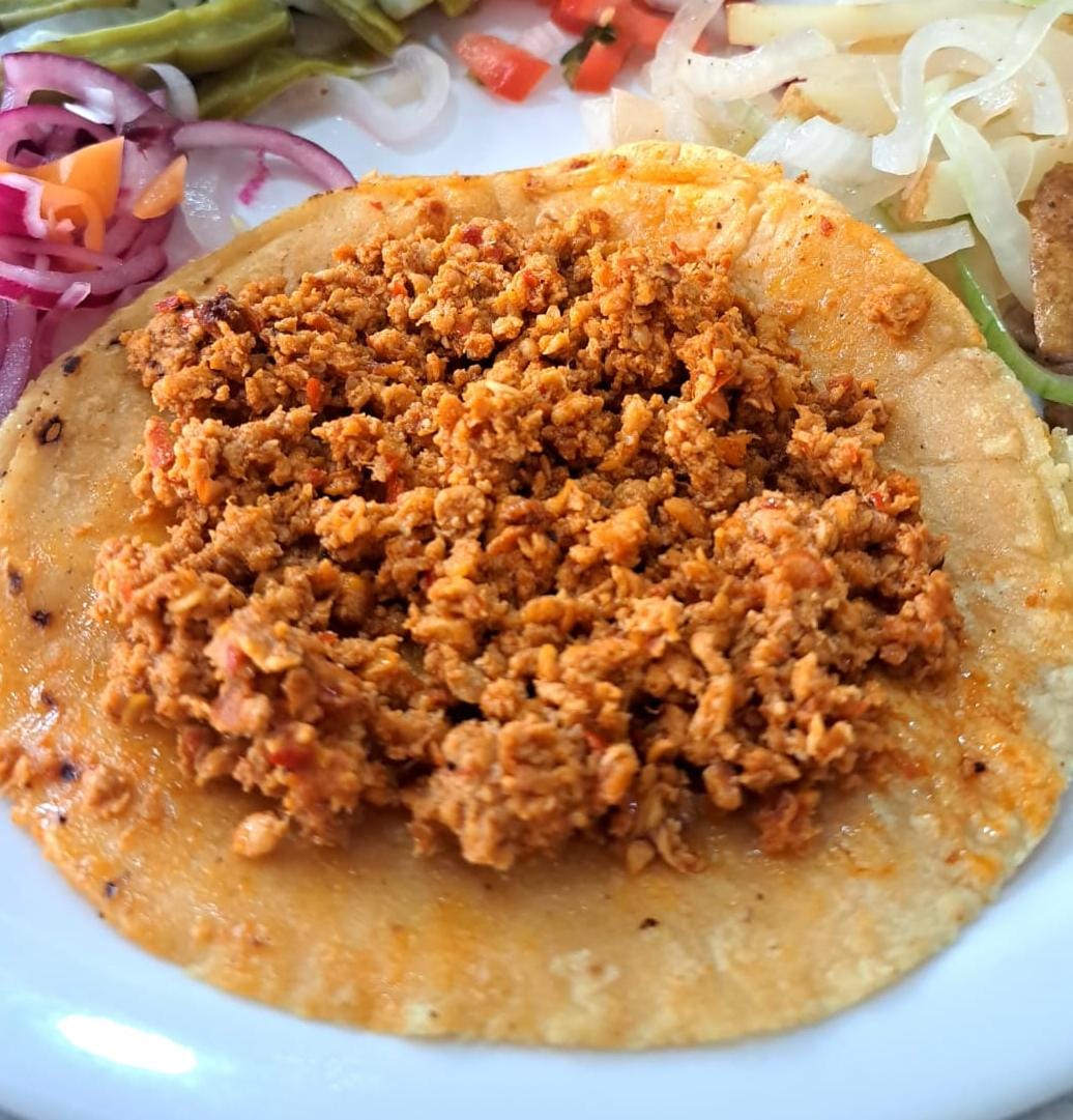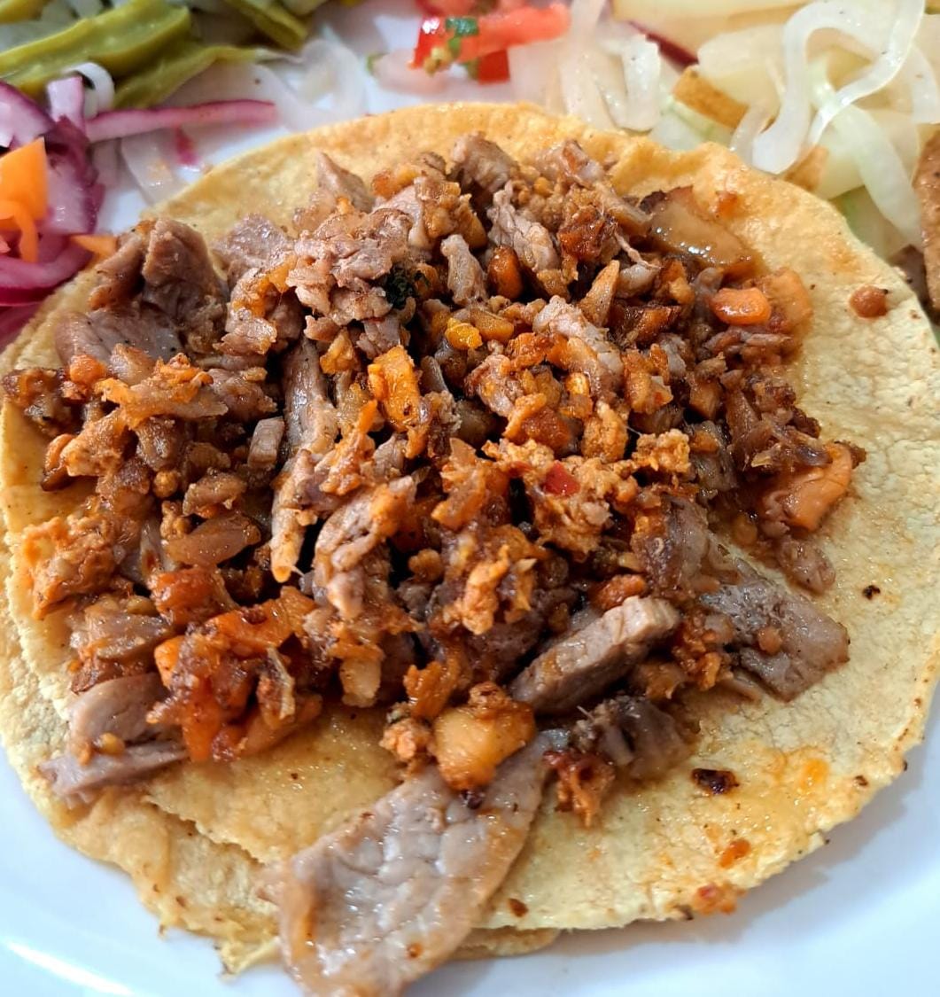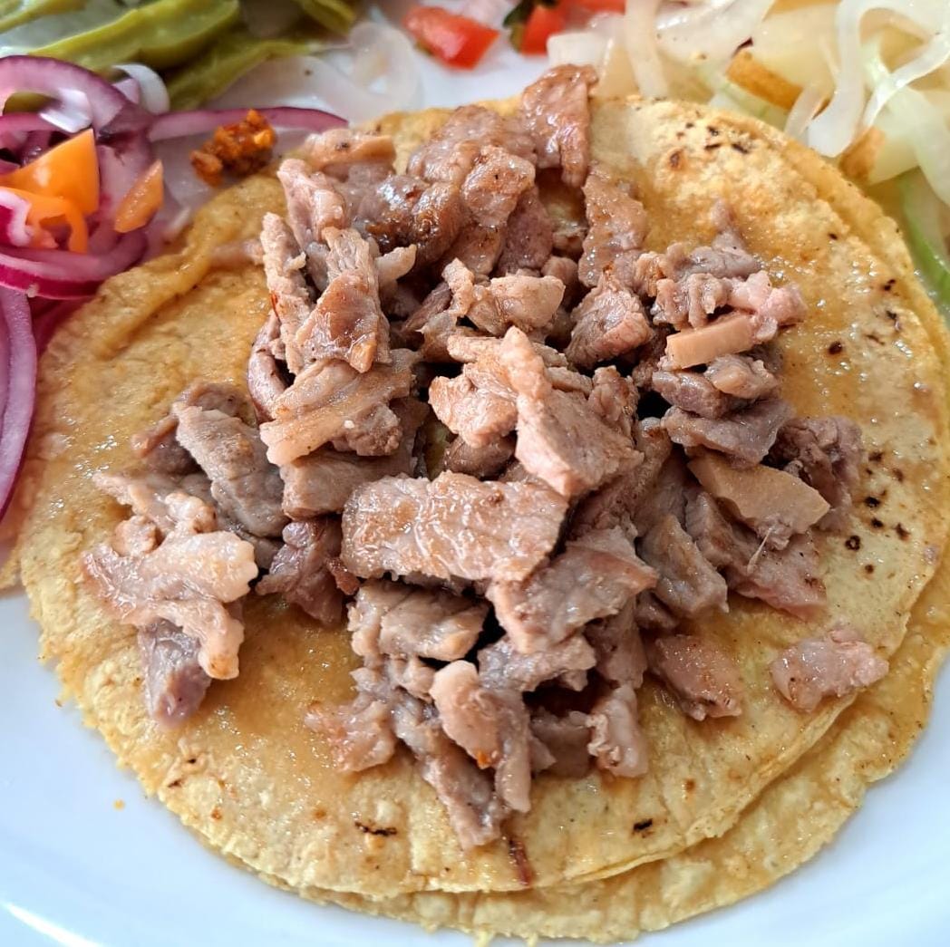 Acompañada de tortilla cebolla limón y chilitos de árbol