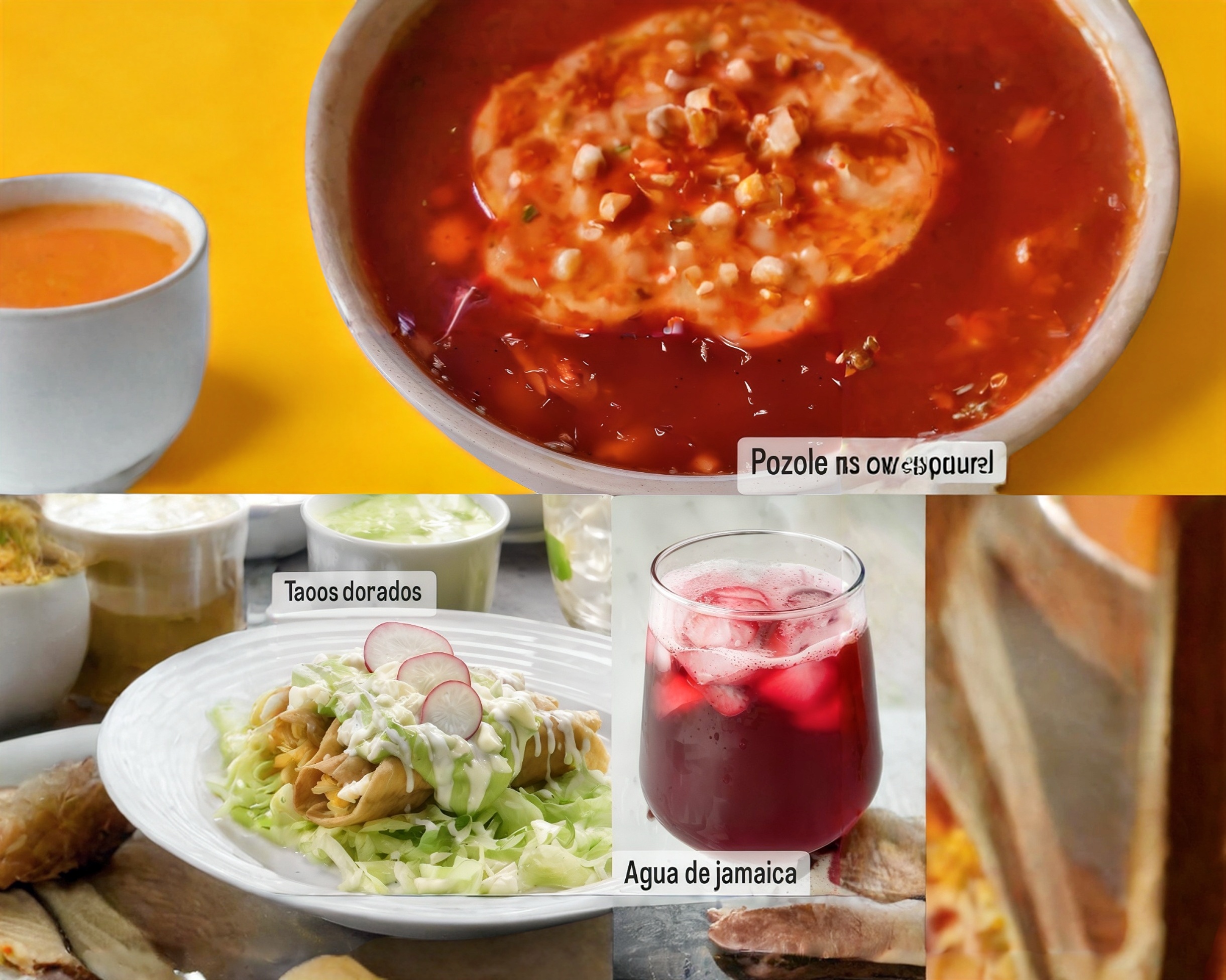 Orden de 4 Tacos Dorados de Papa*1 + 1/2 L de Agua Jamaica*1 + Medio Litro de Pozole de Puerco*1