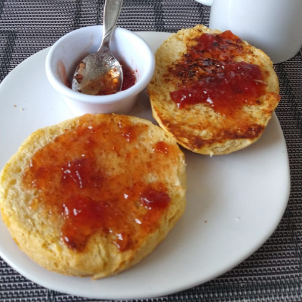 Dos piezas de bisquets con mantequilla (mermelada/lechera/cajeta)
