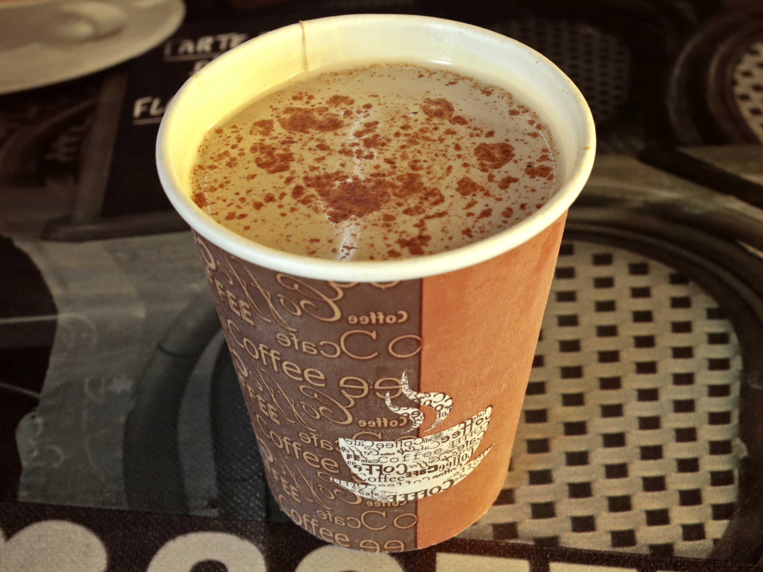 BEBIDA CALIENTE SABOR CAPUCHINO, ESPOLVOREADA DE CANELA,VASO 10 OZ.