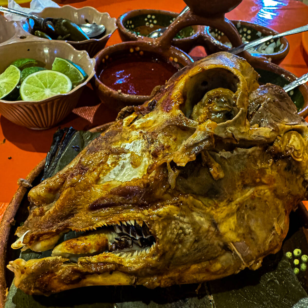 disfruta de nuestro delicioso taco de cabeza de chivo. 1 pieza