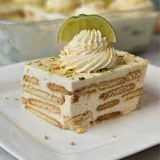Postre frío hecho con capas de galletas y una crema suave de limón.