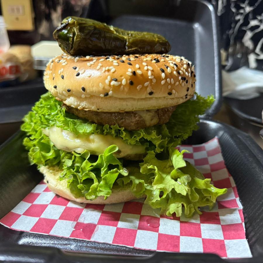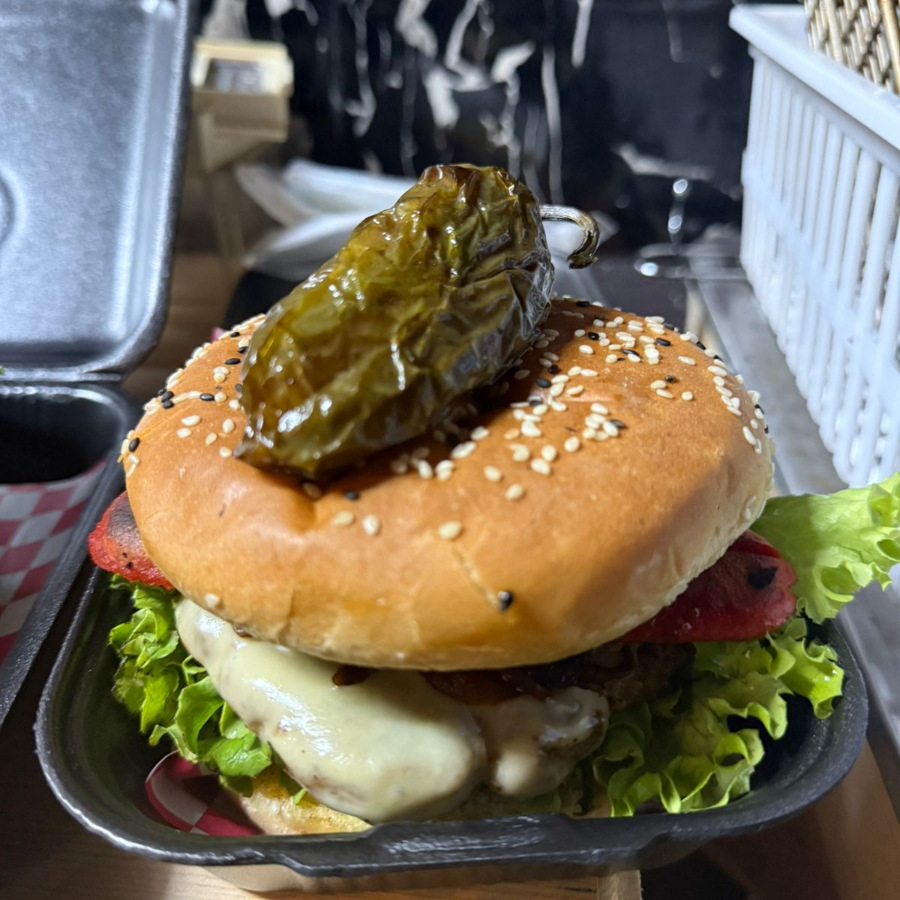 DOBLE PORCION DE CARNE + MAYONESA + JITOMATE + LECHUGA + QUESO + CHILE TOREADO