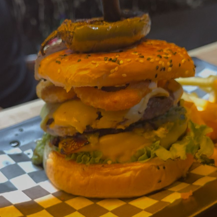 DOBLE PORCION DE CARNE + GUACAMOLE + AROS DE CEBOLLA + CEBOLLA CARAMELIZADA + QUESO + SALSA EXTRA HOT