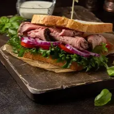 Pan de masa madre, lechuga, jitomate, roast beef, mayonesa, queso suizo, porcion de chips.