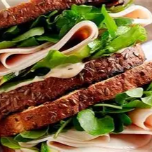 Pan de masa madre, pechuga de pavo, lechuga, queso panela, jitomate, porcion de chips.