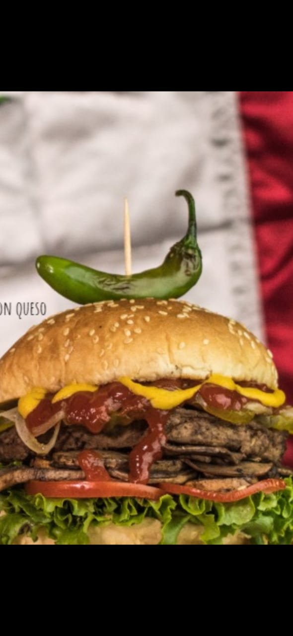 150 gr de sirlon, manchego, tocino picado, aguacate y 1 huevo estrellado, preparada con bollo delOCHE GOURMET mayonesa, mostaza, catsup, chimichurri, Lechuga fresca, cebolla morada, y champiñones asados