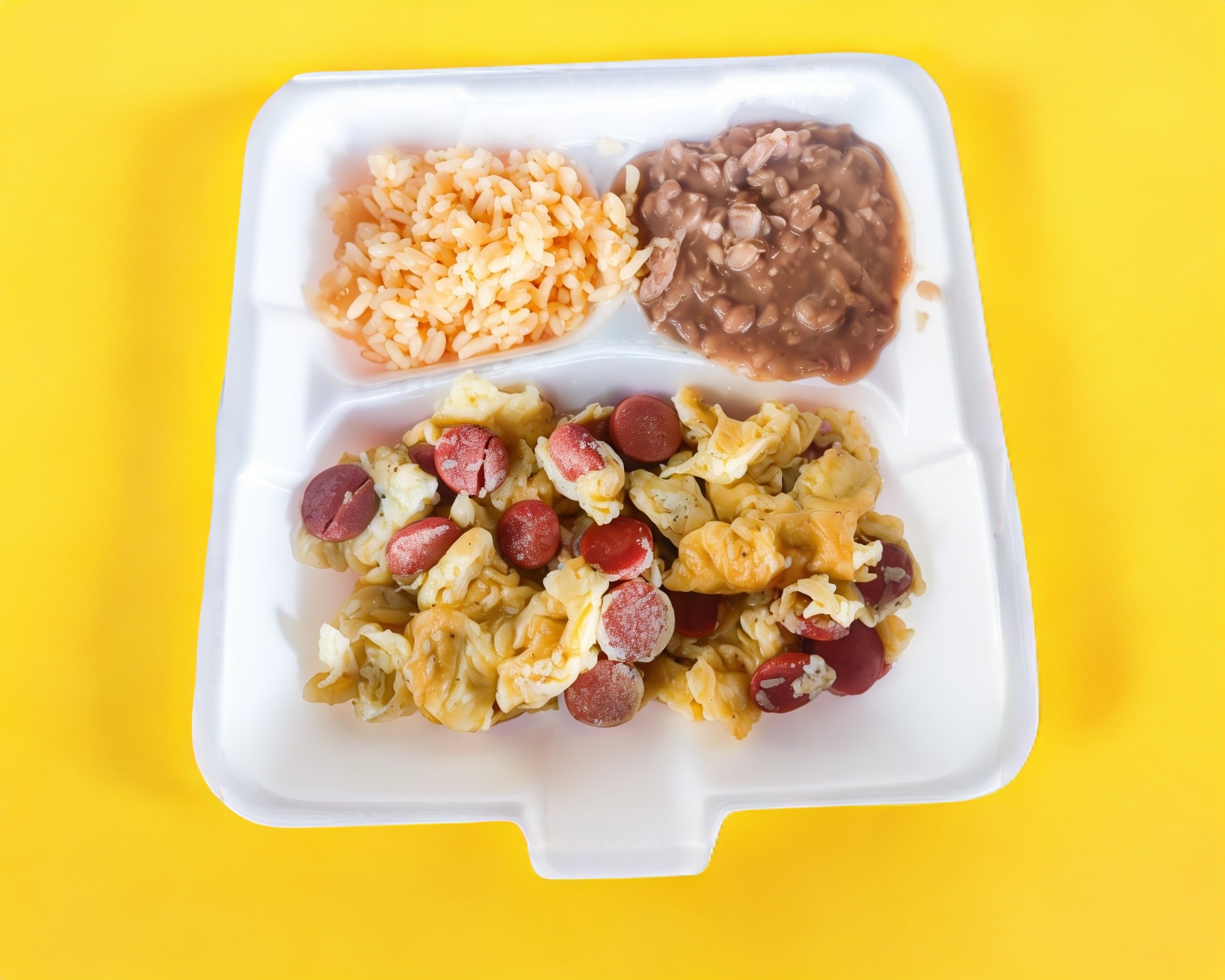 El clásico favorito de todos, preparado con la calidad de casa. Huevos revueltos esponjosos mezclados con jugosos trozos de salchicha. Servidos con una guarnición de arroz rojo al estilo casero y frijoles de la olla. Además, incluimos tres tortillas de maíz hechas a mano para que te prepares unos taquitos de lujo. ¡Empieza tu día con energía!