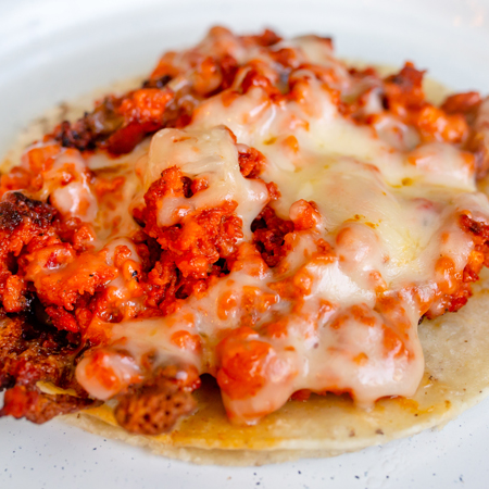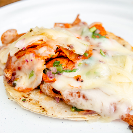 2 tortillas de harina con nuestra rica carne al pastor y queso gratinado. ¡Un clásico!