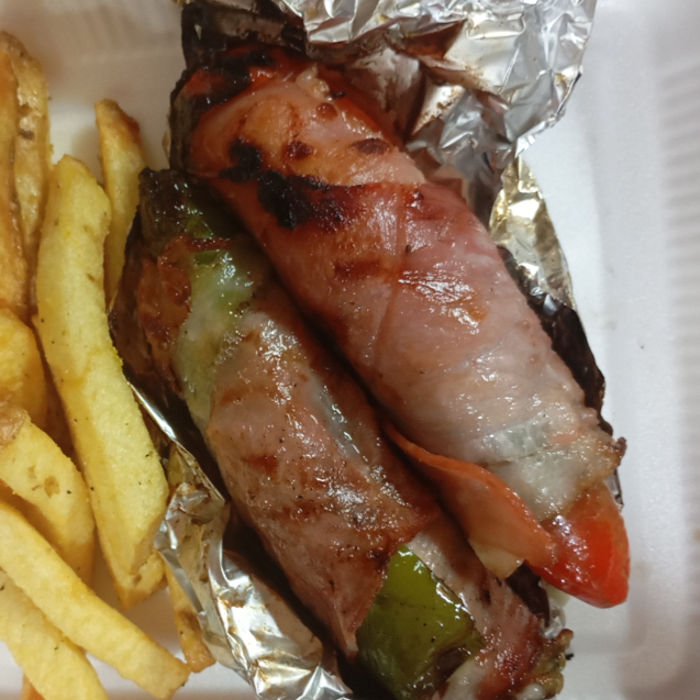 CHILE RELLENO DE QUESO MONTEERY Y ENVUELTO EN TOCINO