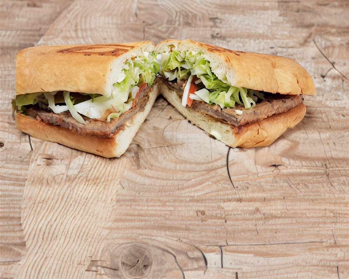 Carne de pastor, mayonesa, jitomate, cebolla, aguacate y queso oaxaca.