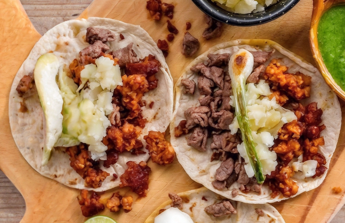 5 deliciosos tacos al pastor con cebolla y cilantro