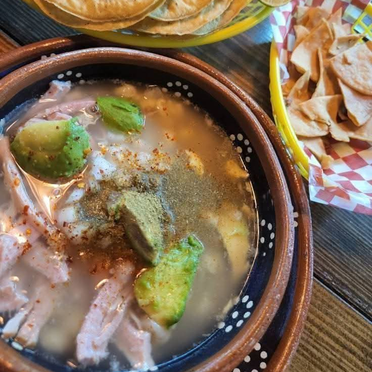 1 LITRO DE POZOLE BLANCO DE PUERCO, CON TOSTADAS, LECHUGA, RABANOS, AGUACATE, OREGANO, CHILE Y LIMONES