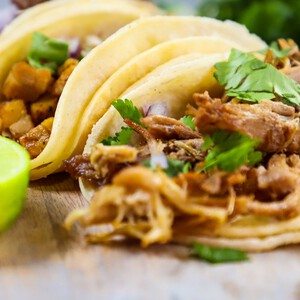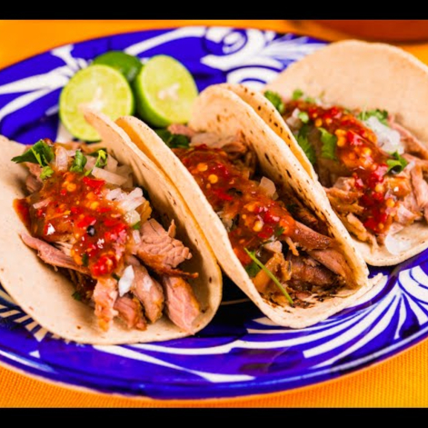 3 Tacos de carnitas SURTIDAS y Coca Cola 600 ml.