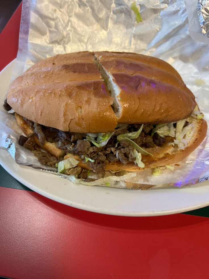 Torta Telera jumbo , bistec, longaniza salchicha, jamón, pierna española, queso, frijoles, cebolla, jitomate, aguacate y lechuga.