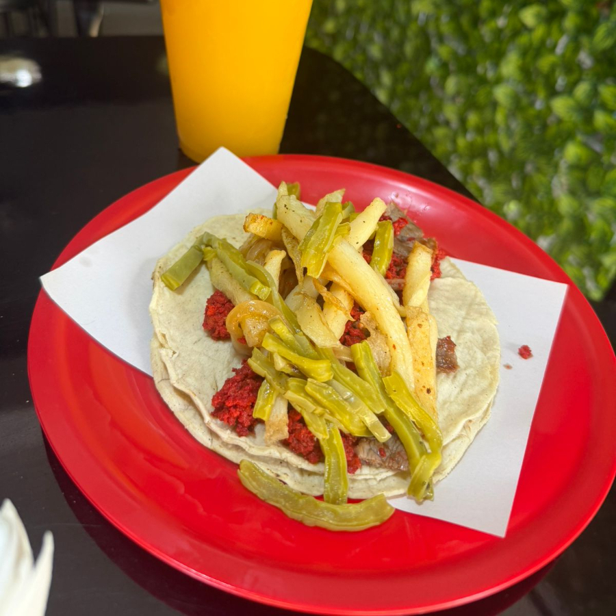 Todos los tacos incluyen papas, cebolla y nopales.