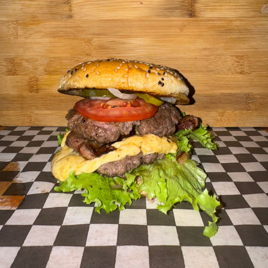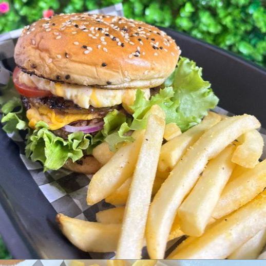 240g de res, tocino, mix de quesos, verdura y papas a la francesa
