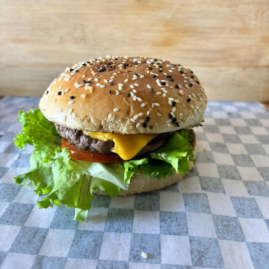 120g de res, queso americano, verdura y papas