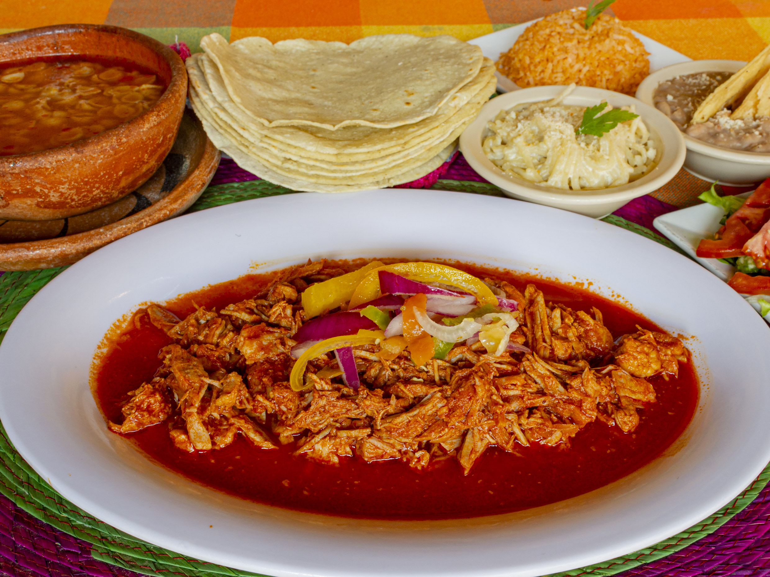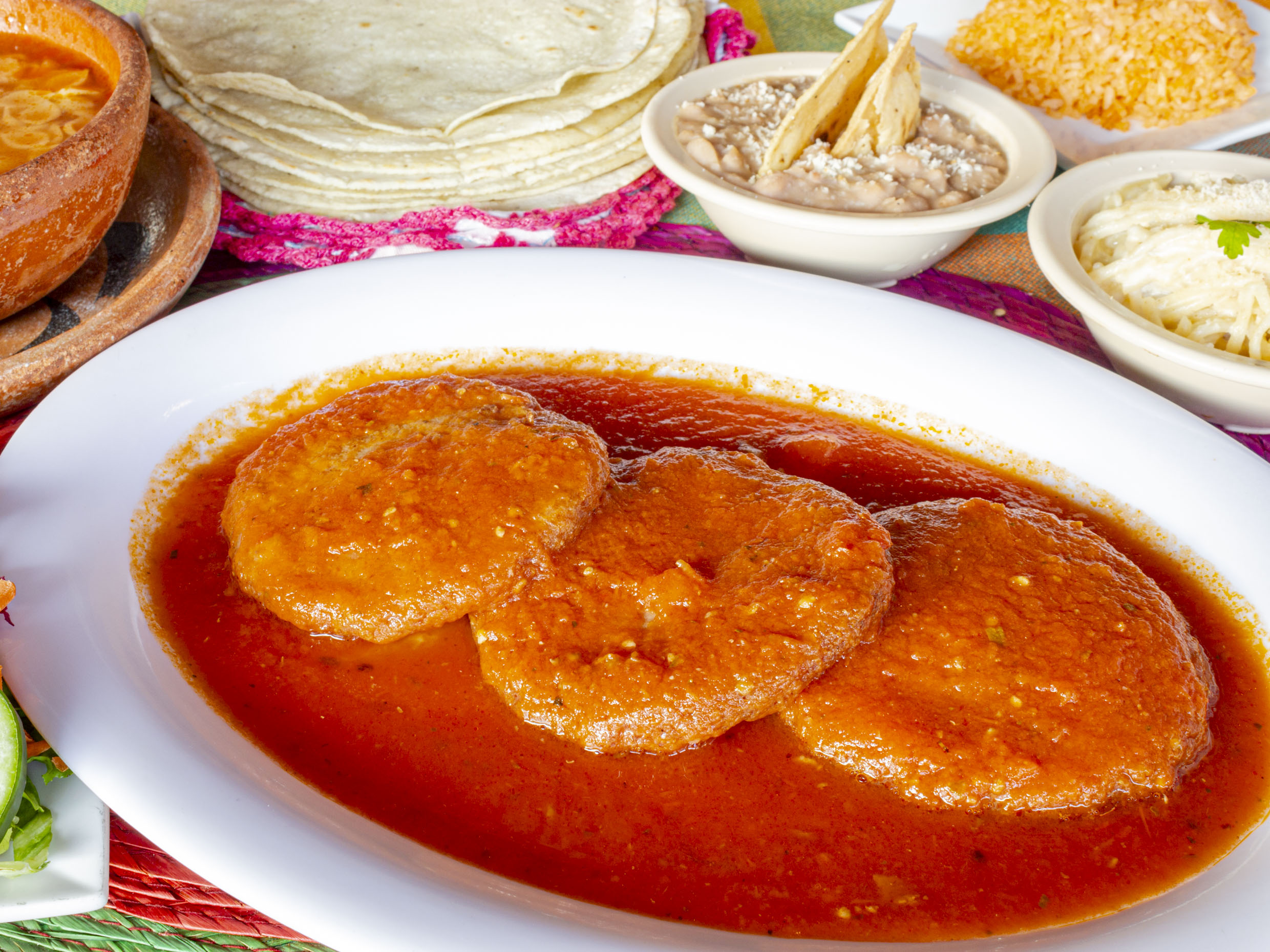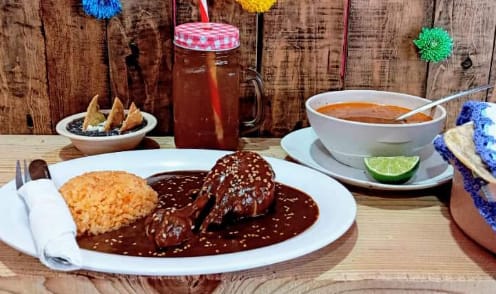 Acompañado con arroz, frijoles y tortillas hechas a mano.