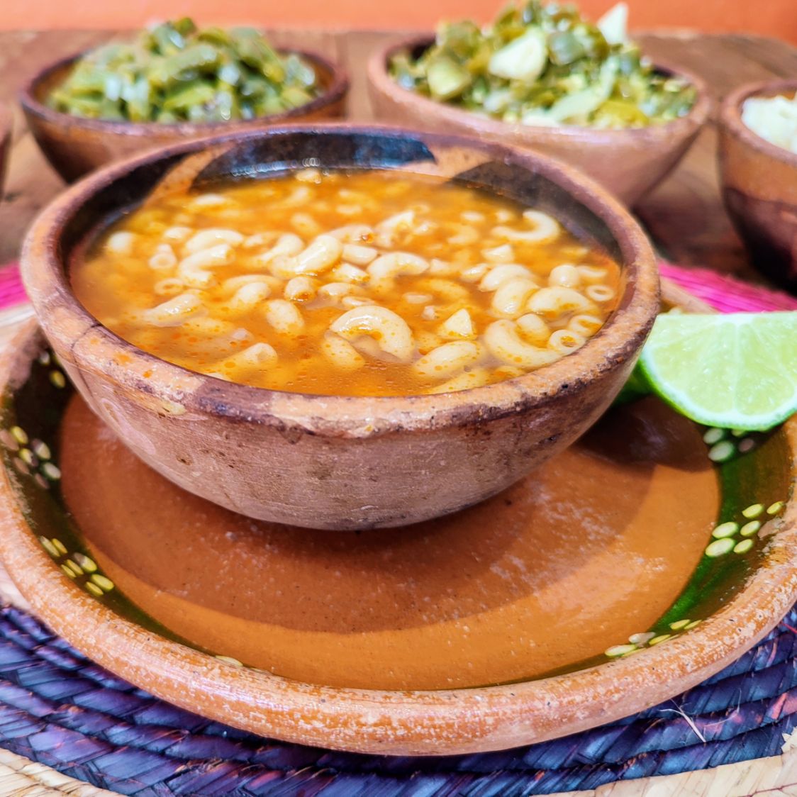 Acompañada con nopal asado, arroz, frijoles, ensalada, tortillas hechas a mano y 1 sopa de entrada.