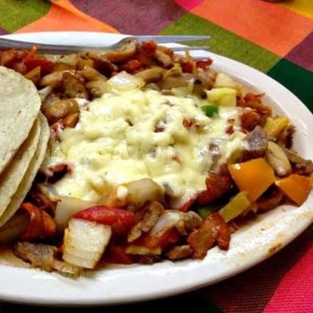 Bistec, tocino, cebolla, morrón y queso.Con 10 tortillas de maiz