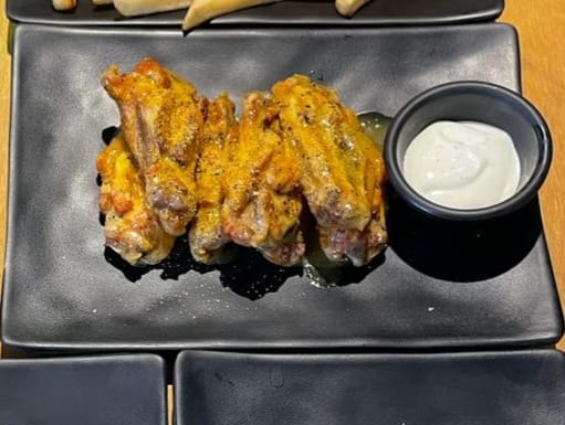 Incluye 1 aderezo ranch, bañados en su salsa y envuelto en papel aluminio para mantenerlas calientes.