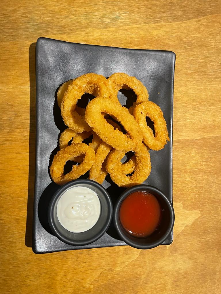 carne de res siloln, aros de cebolla doble queso manchego, lechuga, jitomate, cebolla y chiles en vinagre