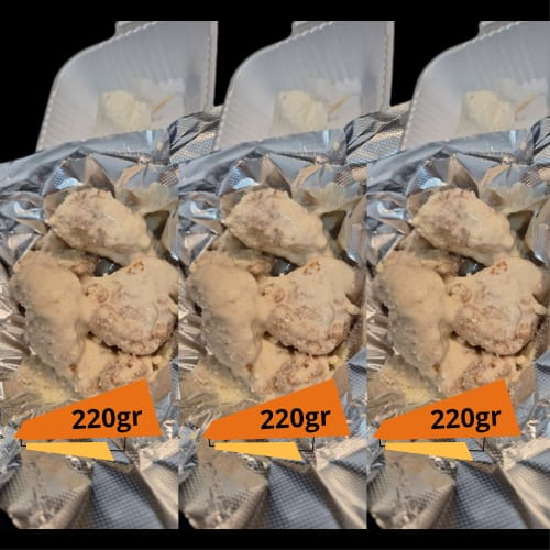 Incluye 3 aderezos ranch, bañados en su salsa y envuelto en papel aluminio para mantenerlas calientes.