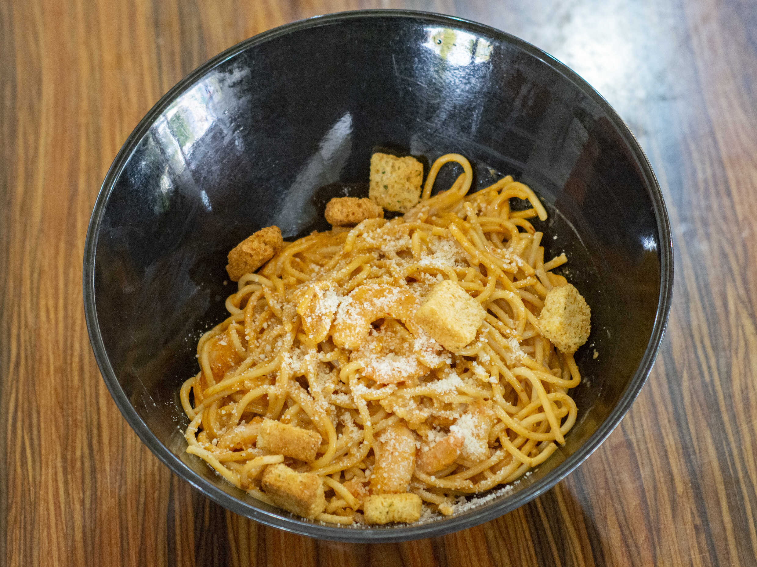 Spaghetti Alfredo con Camarones