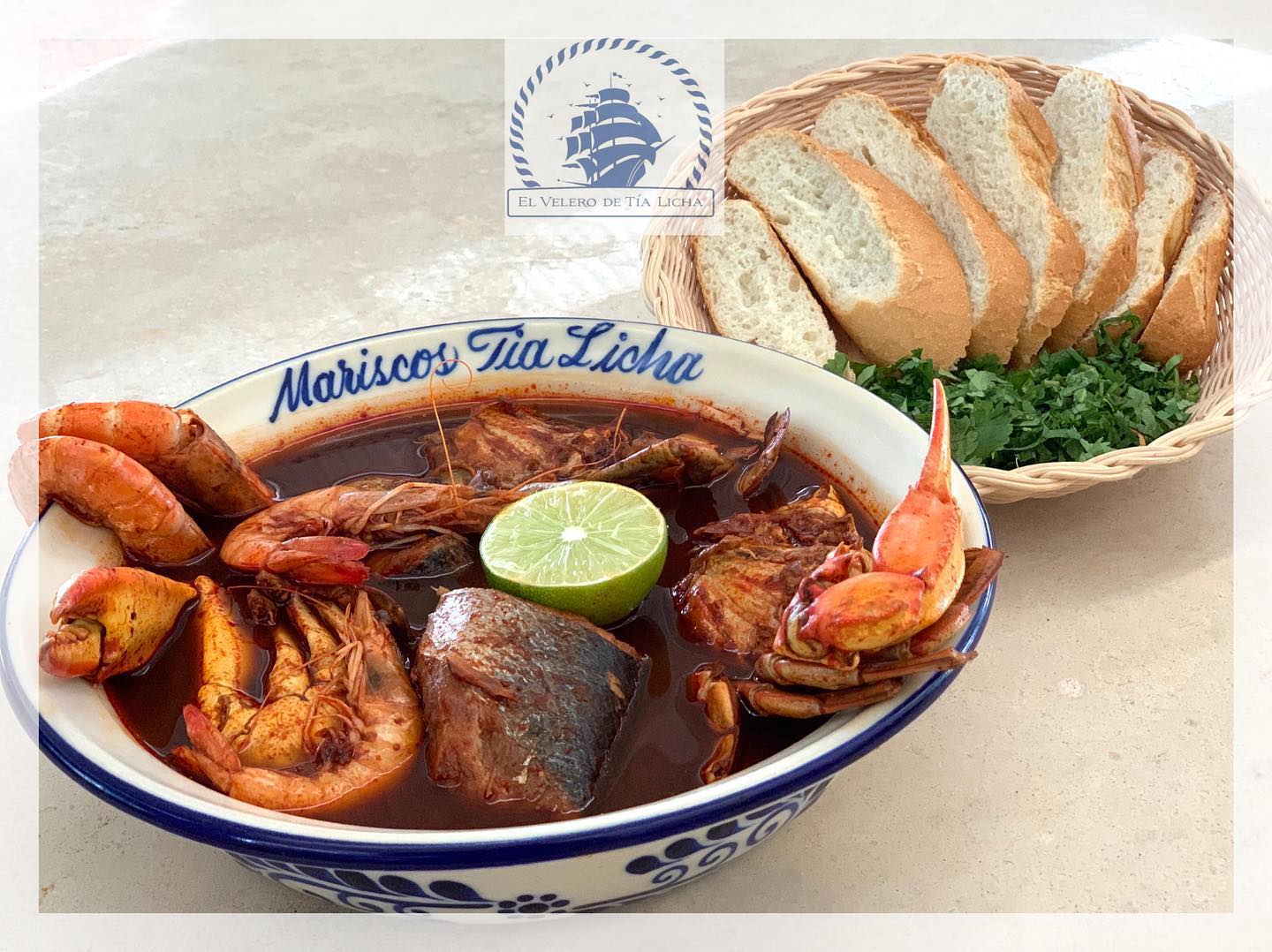 2 Litros, lleva pescado, jaibas, camarones y sopa de mariscos.